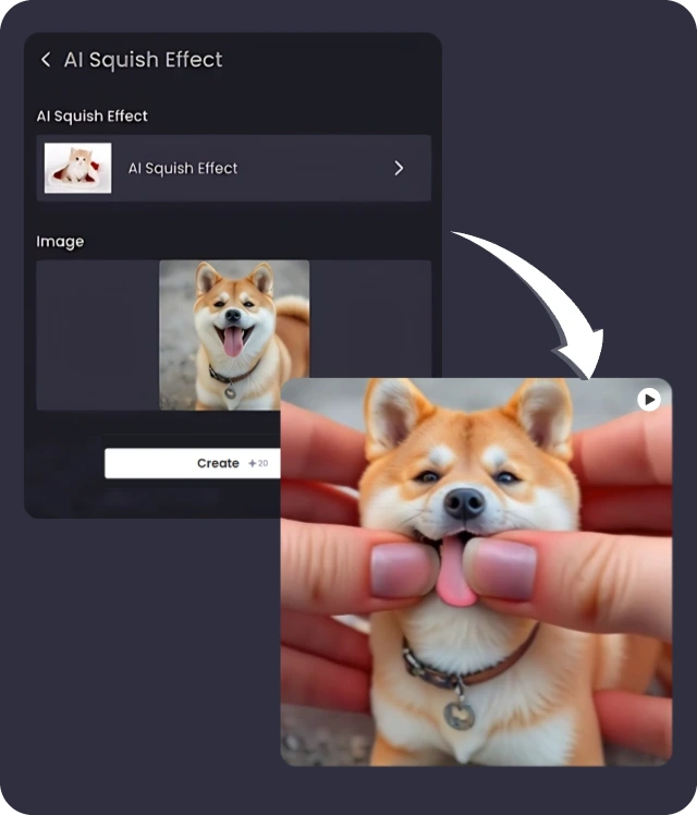 Dale vida a tus fotos con nuestro creador de videos de aplastamiento con IA. Transforma cualquier foto en animaciones divertidas y juguetonas y hazte viral en TikTok, Instagram y más. Ya sean selfies o fotos de mascotas, nuestra herramienta puede crear instantáneamente contenido llamativo que destaque. ¡Únete a la tendencia y empieza a crear hoy mismo!